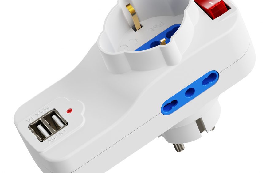 • EWENT ADATTATORE ELETTRICO 3 PRESE 2P USB-A SCHUKO 16A EW1194