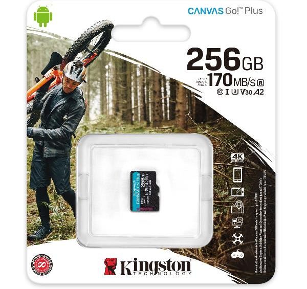 <p> <div> <div> 256GB microSDXC Canvas Go Plus 170R A2 U3 V30 Card </div> <div> <br /> </div> <div> <br /> </div> <div> Scheda di memoria per dispositivi mobili Android, Action cam, Droni e strumenti di produzione video 4K. </div> <div> <br /> </div> <div> La scheda microSD Canvas Go! Plus di Kingston è perfetta per