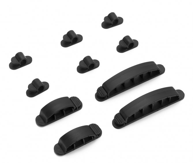 <p> <div> CO-01 </div> <div> Kit porta-cavi da scrivania VulTech® CO-01. Composto da 9 organizer di diverse misure: 3 per cavo singolo, 3 per cavo doppio, 3 per cavo triplo. </div> <div> Utile per organizzare efficientemente i cavi e liberare la scrivania, a vantaggio della produttività. </div> <div> Gli organizer sono dotati di un adesivo che permette di fissarli alla superfice desiderata </div> </p> <div class="table-container"> <div class="table-row"> <div class="table-column-left"> Contenuto della confezione: </div> <div class="table-column-right"> 3x