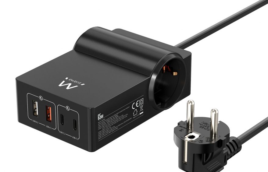 • EWENT MULTIPRESA DA SCRIVANIA 2 PRESE SCHUKO+2 PORTE TYPE-C+2 USB 65W EW3992