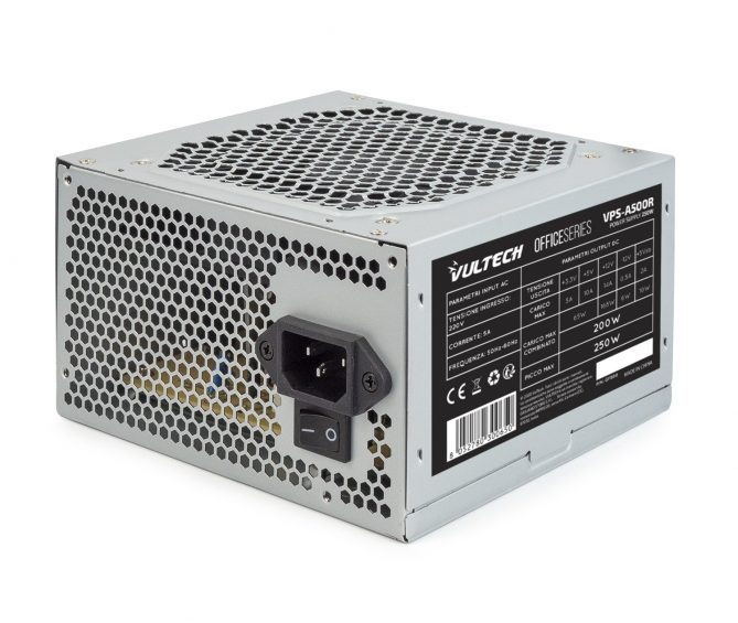 <p> <div> <span style="font-size: 13px;">VPS-A500R</span> </div> <div> <span style="font-size: 13px;">Alimentatore VulTech® VPS-A500R Serie Office da 250W. Indicato per PC con configurazioni impostate per un uso domestico o da ufficio. Supporta perfettamente le normali attività della macchina e garantisce un alto indice di affidabilità nel tempo.</span> </div> <div> <span style="font-size: 13px;"><br /></span> </div> <div> <span style="font-size: 13px;">Con ventola da 12 cm termoregolata a bassa rumorosità: l’attività di raffreddamento aumenta o diminuisce in base al carico di lavoro.</span> </div> <div> <span style="font-size: 13px;"><br /></span> </div> <div>